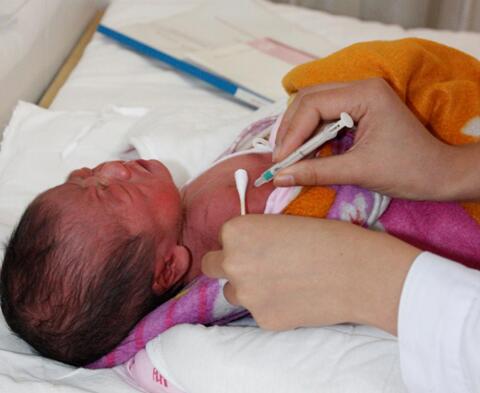 医务人员为新生儿接种乙肝疫苗 云南省妇幼保健院供图