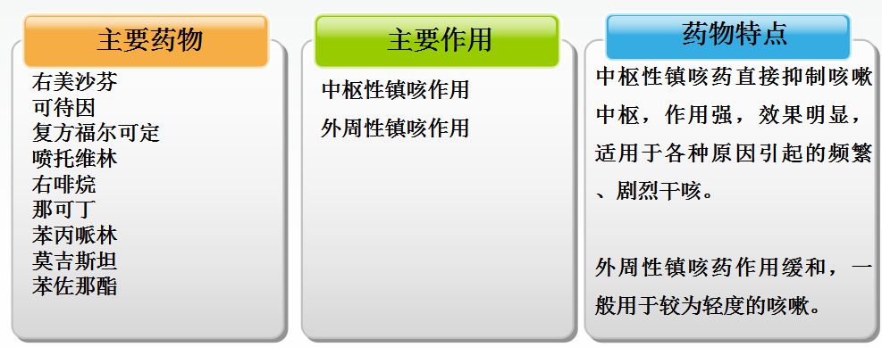 中枢性镇咳药:直接抑制咳嗽中枢而发挥镇咳作用;