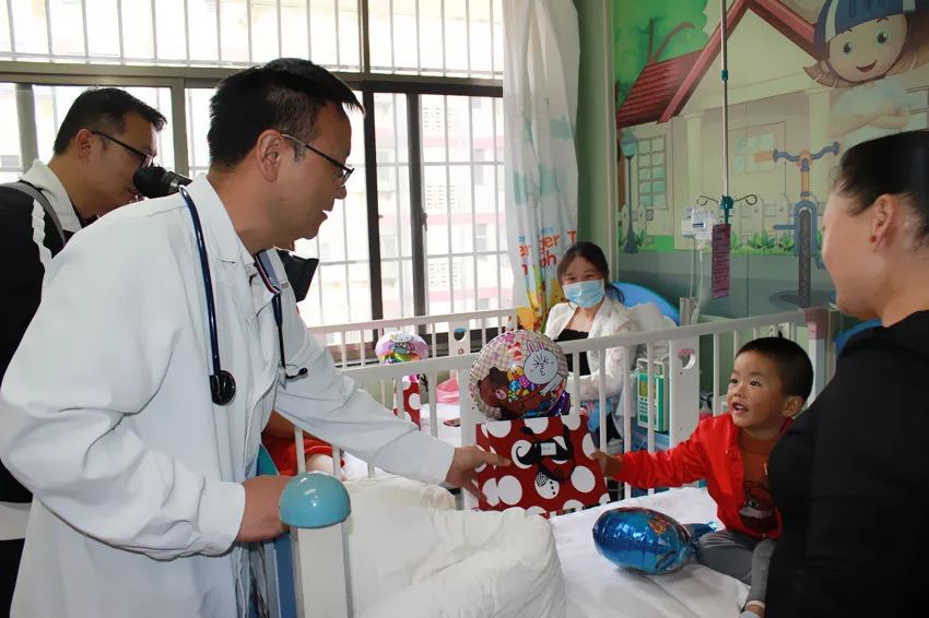 住院的小朋友也同样过了有意义的儿童节。医院领导带领各科室医务人员也为孩子们送上各种阅读绘本,益智玩具,在医院也能收到礼物,小朋友们十分高兴。