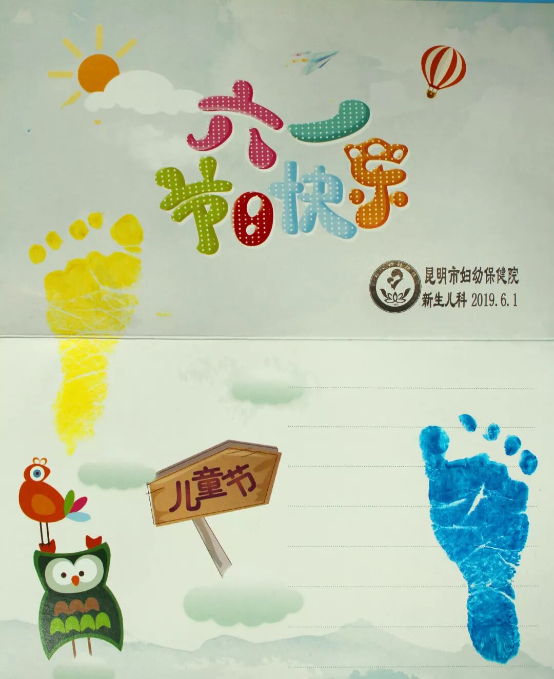 新生儿科赠送宝宝脚印贺卡