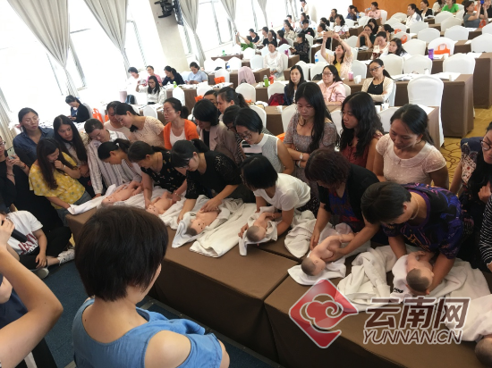 参会的助产士们正在进行分娩技术演练。李智 摄