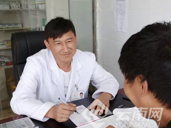 在维西县永春乡庆福村卫生室,黄文东正在给患者开处方。叶利民供图