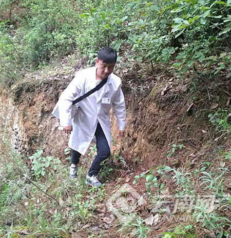 村里不通公路,黄文东只得爬山走小路。叶利民供图