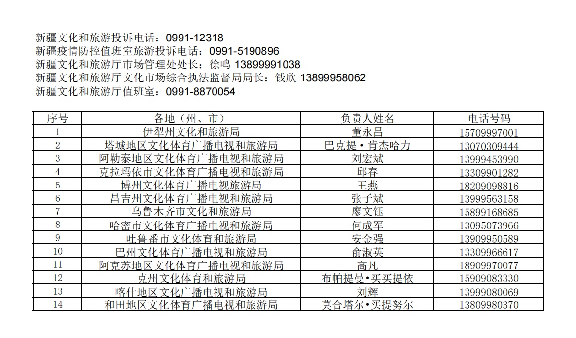 原标题:新疆维吾尔自治区文化和旅游厅公布新疆文化和旅游市场投诉热线电话