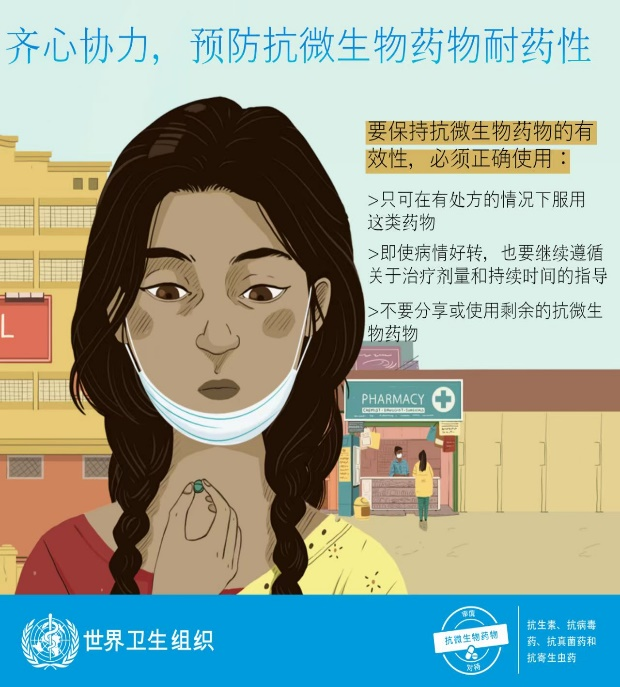 为积极应对微生物耐药带来的挑战,提高社会公众对耐药的认知水平,遏制微生物耐药发展与蔓延,世界卫生组织、联合国粮食及农业组织和世界动物卫生组织召开会议将每年11月的第三周定为“世界提高抗微生物药物认识周”。今年的活动主题为“齐心协力,遏制耐药”。