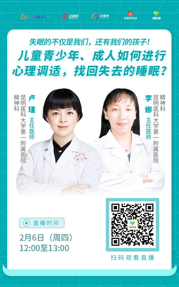 为什么儿童青少年也会有睡眠障碍?睡眠障碍在儿童青少年中的表现有哪些?成人每天睡几个小时属于正常?失眠就需要服用安眠药吗?还有哪些治疗方式?2月6日(周四)12:00至13:00,昆明医科大学第一附属医院专家做客直播间为您解答。
