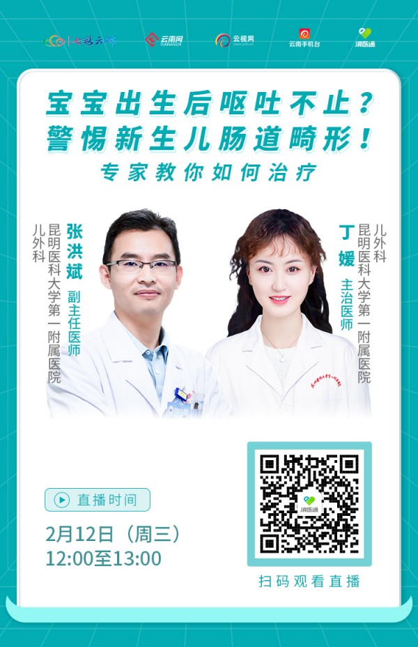 新生儿出生后,哪些表现可能提示肠道畸形?肠道畸形的发病率如何?常见类型有哪些?目前常见的肠道畸形手术方式有哪些?2月12日(周三)12:00至13:00,昆明医科大学第一附属医院专家做客直播间为您解答。