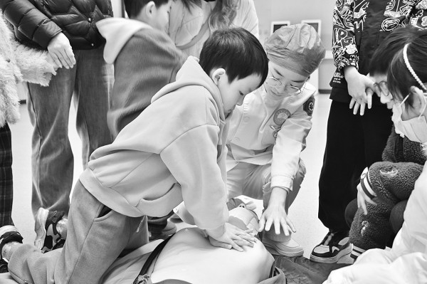 在心肺复苏急救术体验区,医护人员向“小医生”们耐心讲解了心肺复苏急救知识,手把手指导他们进行实际操作。按压的力度、频率,吹气的角度、时长,每个细节,“小医生”们都认真学习。“以后遇到危急情况就可以救助别人啦。”“小医生”们激动地说。