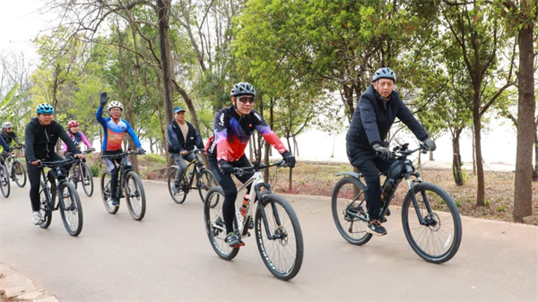 澄江市教育体育局局长李艳波介绍:“我们将充分利用并宣传好抚仙湖优质的生态与户外运动资源。先由干部示范,积极带动职工,进而吸引更多群众、游客和旅居澄江的朋友参与骑行慢跑。”