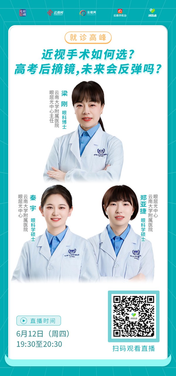 如何判断自己是否适合手术?除了摘镜愿望,哪些症状提示该尽快检查?散光、老花眼、高度近视(>1000度)患者还有机会手术吗?6月12日(周四)19:30至20:30,云南大学附属医院专家做客直播间为您解答。