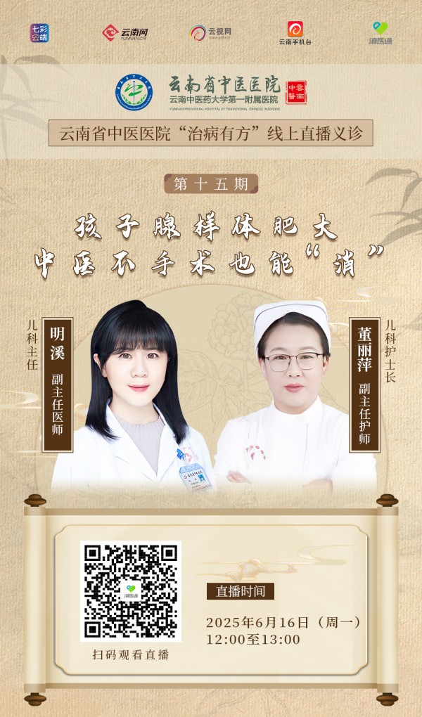 什么是儿童腺样体肥大?腺样体肥大有哪些症状?哪些因素容易导致腺样体肥大?目前中医主要有哪些治疗手段?6月16日(周一)12:00至13:00,云南省中医医院专家做客直播间为您解答。