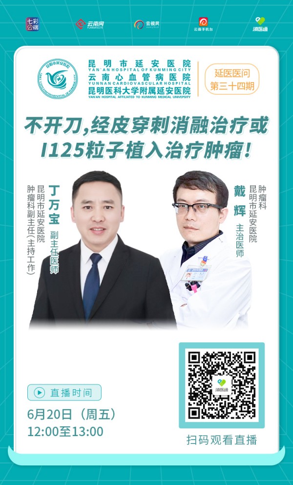 什么是肿瘤微创治疗?哪些类型的肿瘤适合采用微创消融治疗?肿瘤大小和位置是否影响治疗效果?6月20日(周五)12:00至13:00,昆明市延安医院专家做客直播间为您解答。