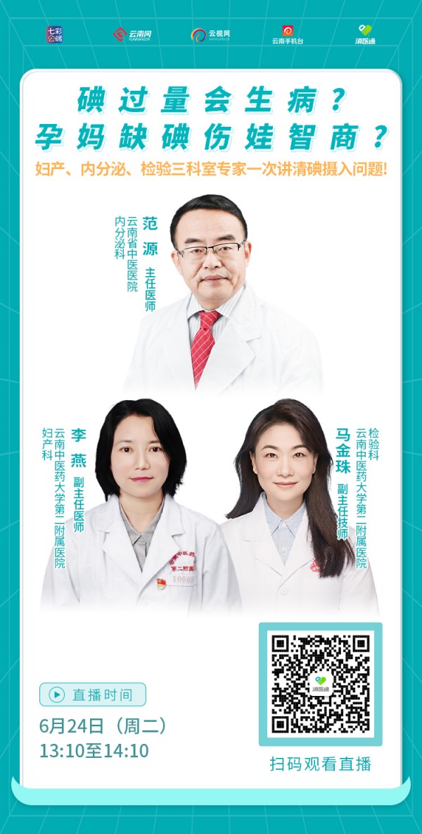 碘对人体究竟有多重要?缺碘和碘过量会怎样“攻击”我们的甲状腺?孕妇缺碘真的会影响胎儿智商吗?具体有哪些不可逆危害?6月24日(周二)13:10至14:10,云南省中医医院、云南中医药大学第二附属医院专家做客直播间为您解答。