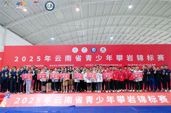 近日,云南省青少年攀岩锦标赛在昆明市落幕。本次比赛吸引了来自全省8个州(市)代表队、共计108名运动员报名参赛。比赛由云南省体育局主办,昆明市教育体育局、云南省登山户外运动协会承办,设甲、乙、丙三个年龄组,各组分设男女组别,竞赛项目包括速度、难度、攀石、两项全能等个人项目,以及速度接力、难度团体等团队项目。