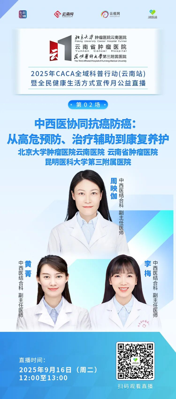 在现代医学的癌症治疗体系中,如何定位中医的角色?放疗和化疗常见的副作用(如恶心呕吐、乏力、骨髓抑制、口腔黏膜炎等),中医有哪些方法来缓解?9月16日12:00至13:00,专家做客滇医通直播间为你解答。