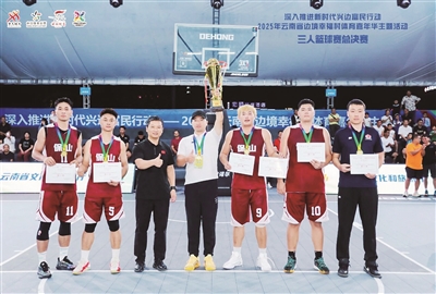 10月31日,2025年云南省边境幸福村体育嘉年华男子三人篮球赛在德宏州芒市广场落下帷幕。保山市代表队队员李宇超、熊杰、王勐、王彪、封再攀以出色的发挥,一路高歌猛进,斩获冠军,刷新保山市在省级三人篮球赛事中的历史最佳纪录。