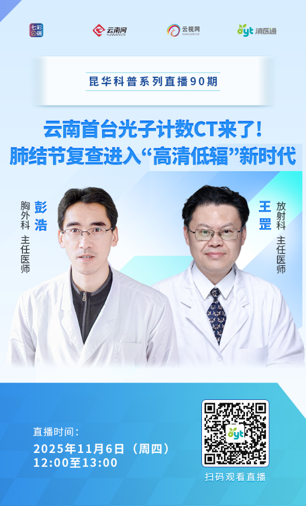 什么是光子计数CT?它和传统CT最大不同是什么?光子计数CT“辐射更低”有多低?对需要长期随访的患者意味着什么?除肺结节的随访之外,光子计数CT还应用于哪些疾病的检查?11月6日(周四)12:00至13:00,专家做客滇医通直播间为您解答,欢迎扫码观看。