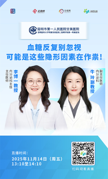 一直按时吃药、控饮食,血糖还是反复波动,背后藏着哪些容易被忽视的原因?长期注射胰岛素,却出现体重异常增加的情况该如何应对?11月14日(周五)13:10至14:10,专家做客滇医通直播间为您解答,欢迎扫码观看。