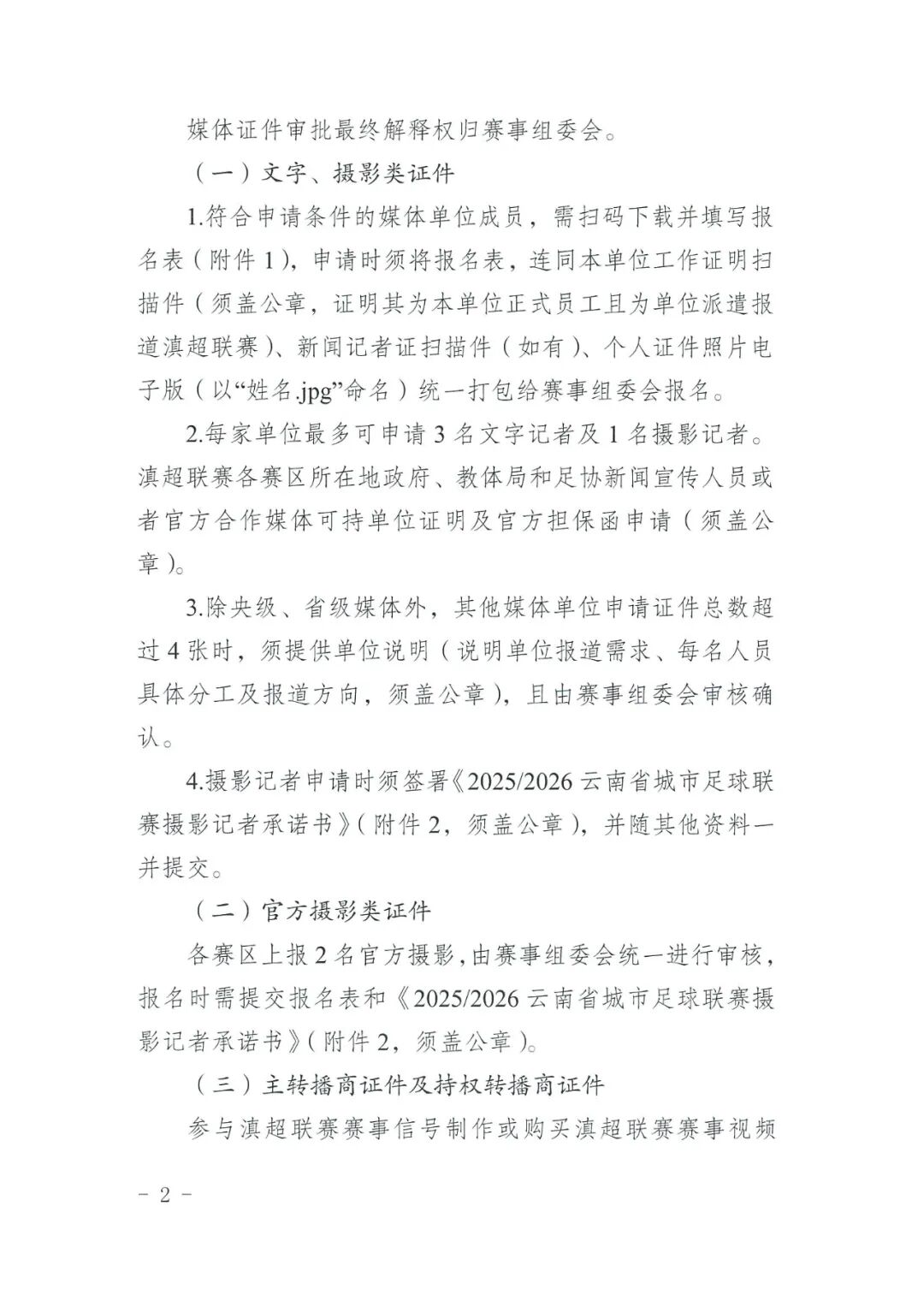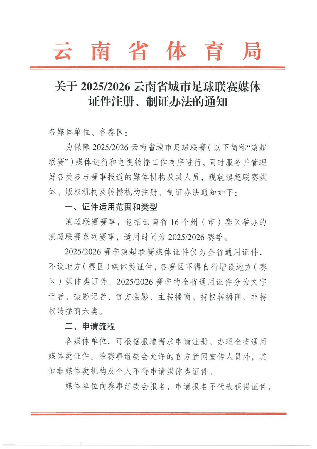 《关于2025/2026云南省城市足球联赛媒体证件注册、制证办法的通知》