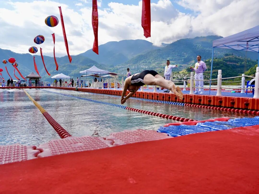 发令枪响,选手们纵身跃入江水,激烈的比赛给沿江助威的观众留下了难忘的记忆。来自保山阿瑞斯游泳俱乐部的选手张铭恩首次体验公开水域赛事,他说:“下水前一直担心自然水域的水流和温度,真游起来反而被澜沧江的清澈打动了。这和泳池完全不同的运动体验,让我深深感受到了与大自然融为一体的自由和畅快。”