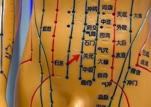关元,在肚脐下三寸,伸手四指并拢就是三寸。