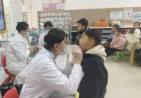 活动现场,党员医护工作者主动向前、全程值守,积极开展义诊服务及健康科普工作。针对儿童群体常见口腔问题,为160余名儿童提供免费口腔检查、涂氟等公益服务,对龋齿、多生牙、滞留牙、错颌畸形等问题逐一进行专业分析评估,并为孩子们建立初步健康档案。同时,通过趣味讲解、互动问答等生动形式,向孩子们普及护齿知识,引导孩子们养成良好口腔卫生习惯,在轻松氛围中将爱护牙齿的健康理念深植童心。