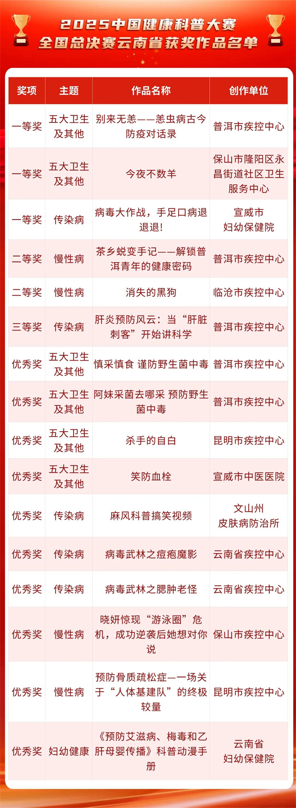 原标题:2025中国健康科普大赛落下帷幕,云南省多部作品获奖!
