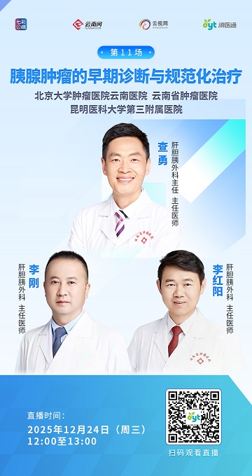 高危人群(如50岁以上、长期吸烟、肥胖、有家族史或慢性胰腺炎患者)应定期进行肿瘤标志物(CA19-9、CEA)和影像学检查(超声、MRI/CT)。对于疑似病例,可联合PET/CT和超声内镜(EUS)提高检出率,必要时通过EUS引导下细针穿刺活检(FNA)确诊。12月24日12:00至13:00,专家做客滇医通直播间为您解答胰腺肿瘤的早期诊断与规范化治疗。