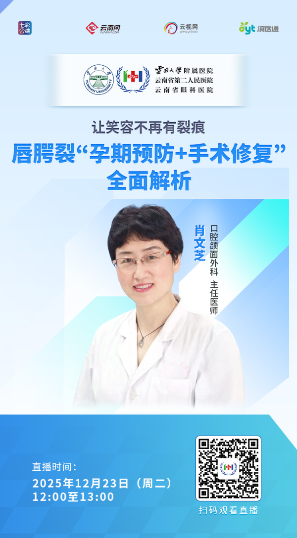 唇腭裂是一种什么样的疾病?孕期感冒发热,是否会引起唇腭裂?孕期注意事项有哪些?宝宝得了唇腭裂,家长应该怎么办?唇裂术后怎么护理?如何让瘢痕最小化?唇裂会影响发音吗?12月23日中午12点,云南大学附属医院肖文芝做客直播间,欢迎观看。