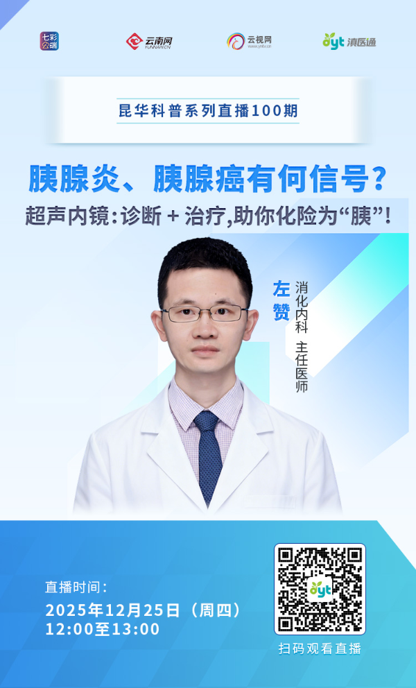 胰腺在我们身体里扮演着什么角色?出现什么症状要小心胰腺炎?哪些是胰腺炎的高危人群?胰腺癌的早期信号有哪些?需要多久做一次胰腺相关的筛查?什么是超声内镜?它和我们平时做的腹部B超、普通胃镜有本质区别吗?12月25日中午12点,云南省第一人民医院消化内科主任左赞做客直播间,欢迎收看。