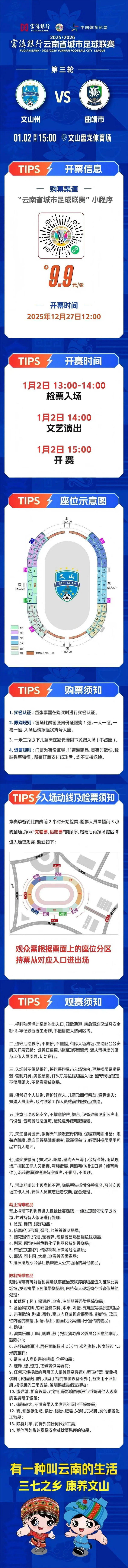 为保障观赛体验与安全,富滇银行文山分行联合赛事组委会制定了详尽的观赛指引,并于12月27日开始售票,想到现场观赛的朋友点击下面的小程序抢票↓↓↓