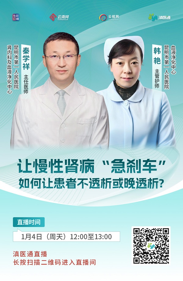 身体出现哪些异常,可能是肾脏在报警?确诊肾病,如何规范治疗?肾病引发的贫血、骨病,能一起解决吗?1月4日(周日)12:00至13:00,昆明市第一人民医院肾内科及血液净化中心专家团队做客滇医通直播间,欢迎收看。