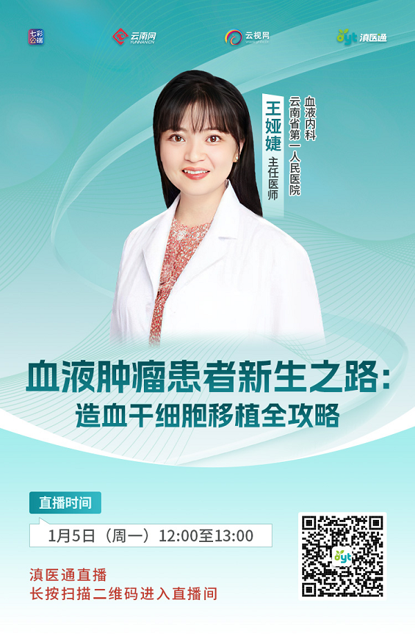 什么是造血干细胞移植?它就是我们常说的“骨髓移植”吗?哪些疾病需要做造血干细胞移植?是否有年龄限制?1月5日(周一)12点至13点,云南省第一人民医院血液内科专家做客滇医通直播间为您解答。