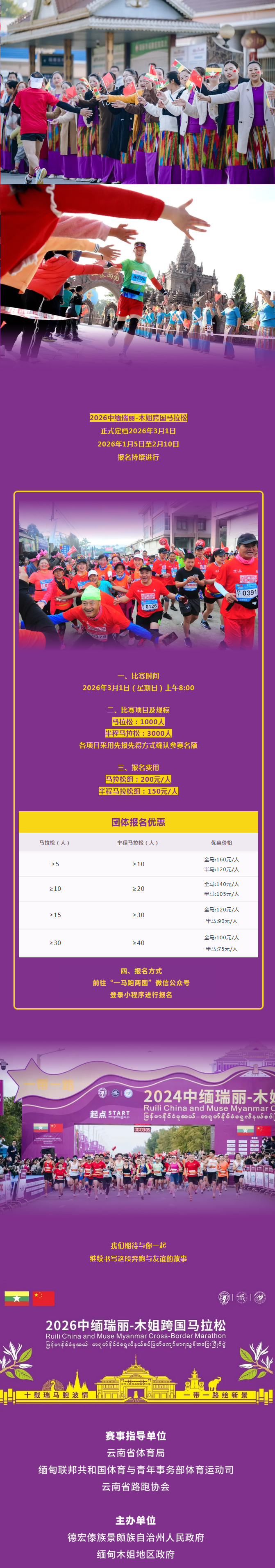 原标题:报名已开启!2026中缅瑞丽-木姐跨国马拉松官宣