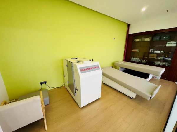 该区域设有律动床与红外气血养生机,可以排除湿寒,促进血液循环,缓解关节及肌肉疼痛,促进肠胃蠕动,改善便秘问题,提升血液循环,舒缓肌肉紧张,增强全身血流灌注,提高心血管功能,适用于脊柱损伤患者或心肌梗塞后遗症患者的康复训练。