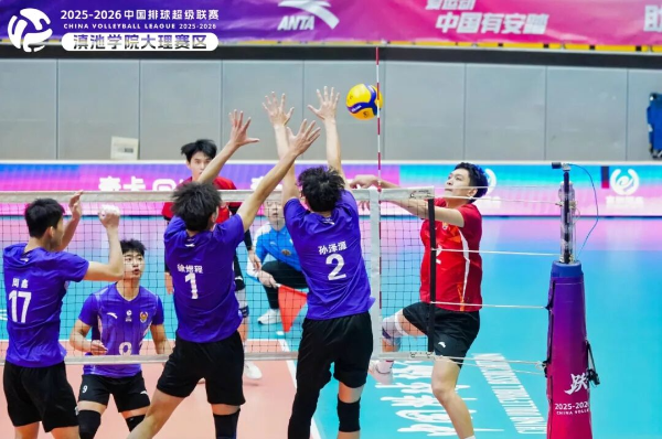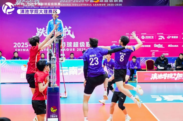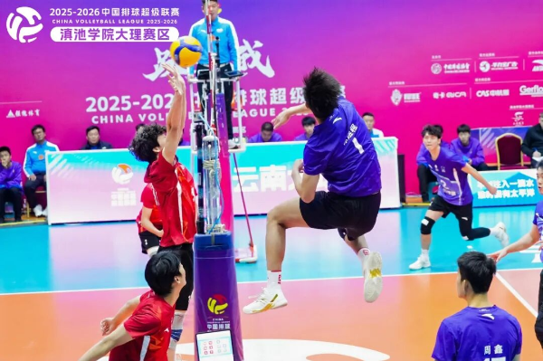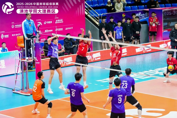 1月8日,2025-2026中国男子排球超级联赛常规赛B级第八轮第22场比赛在大理州体育中心体育馆收官。云南滇池学院男排主场3比0战胜四川男排,三局比分为25比21、25比19、25比17。