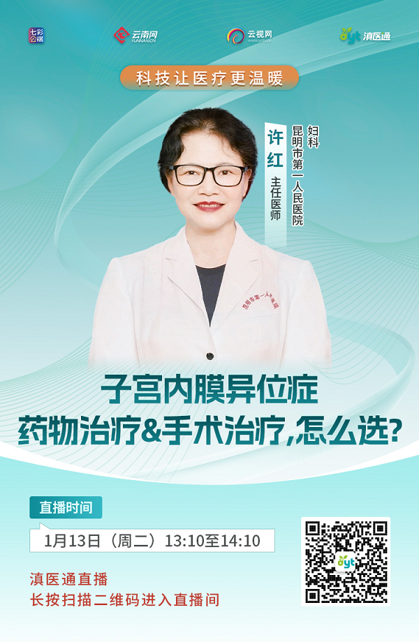 什么是子宫内膜异位症?为什么会发生子宫内膜异位?子宫内膜异位症的症状有哪些?子宫内膜异位症该如何治疗?药物治疗和手术治疗怎么选?1月13日(周二)13:10至14:10,专家做客滇医通直播间为您解答。
