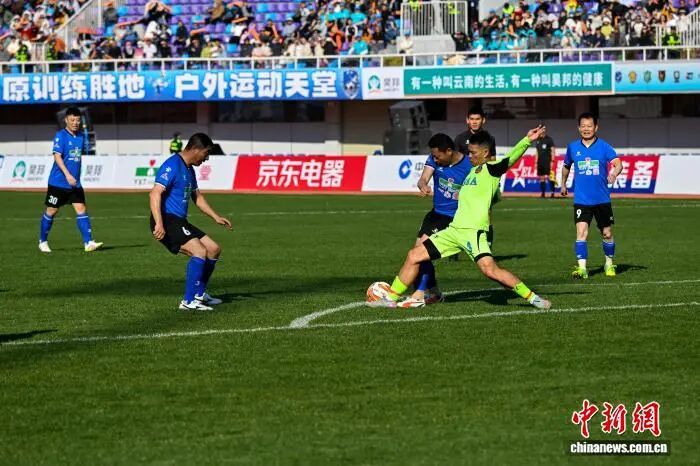 友谊赛分三节进行,谭咏麟、黄日华、何家劲等香港明星先后上场,在高原阳光下奋力拼搏。昆明明星足球队亦表现不俗,多次制造破门机会。中场休息环节,香港明星轮番演唱,延续“足球+演唱会”的特色模式,不断将气氛推向高潮。经过激烈角逐,香港明星足球队和昆明明星足球队最终比分为3:4。