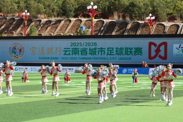 赛前举行了文艺表演。民族服饰秀《云绣彝裳》向观众展示楚雄非遗的厚重底蕴,啦啦操表演《足球宝贝》将动感旋律与活力舞步融合,让赛场化作欢乐的海洋。