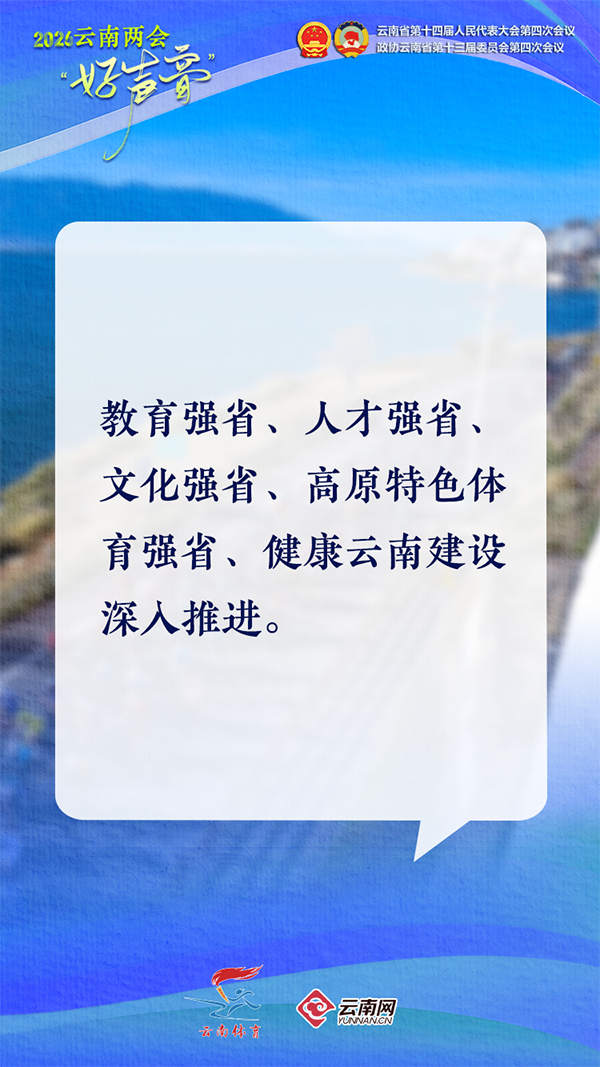 1月28日,云南省第十四届人民代表大会第四次会议在昆明开幕。政府工作报告回顾了“十四五”时期及2025年云南体育亮眼成绩,明确了“十五五”时期云南高原特色体育强省建设的主要目标任务与2026年重点工作,一起来看↓