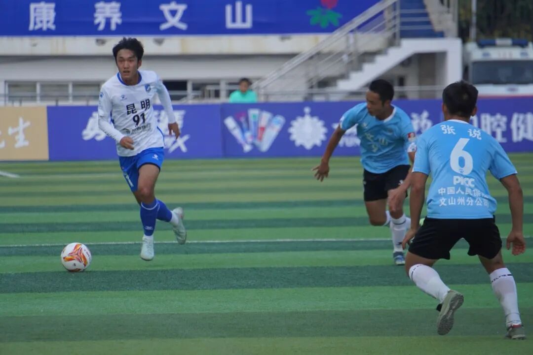 更为关键的是,昆明队的边路攻势并非仅局限于前卫线。左右两名边后卫梁栋和紫晟峰在扎实完成防守任务的基础上,展现了极强的助攻欲望和出色的插上能力。他们与身前的边前卫形成了有效的套边配合或轮转换位,使得昆明队在两个边路的进攻层次极为丰富,令文山队的防线顾此失彼,疲于奔命。
