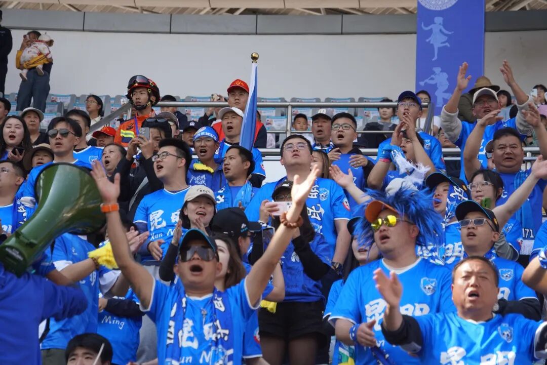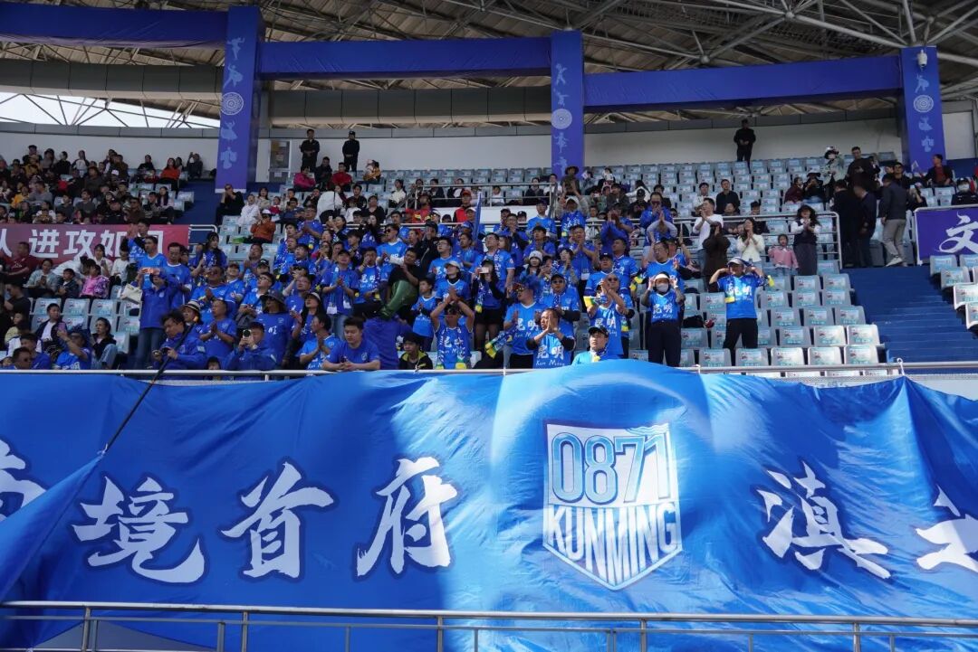 本场比赛,除了场上球员的精彩表现,看台上那一抹亮丽的蓝色风景线同样不可或缺。数百名昆明球迷不辞辛劳,或自驾、或乘坐高铁、或集体包乘大巴,远征文山,为心爱的球队呐喊助威。整场比赛,昆明球迷所在的看台区域歌声、鼓声、呐喊声此起彼伏,从未停歇,其制造出的浩大声势,极大地鼓舞了场上队员,甚至在一定程度上形成了“反客为主”的效应。