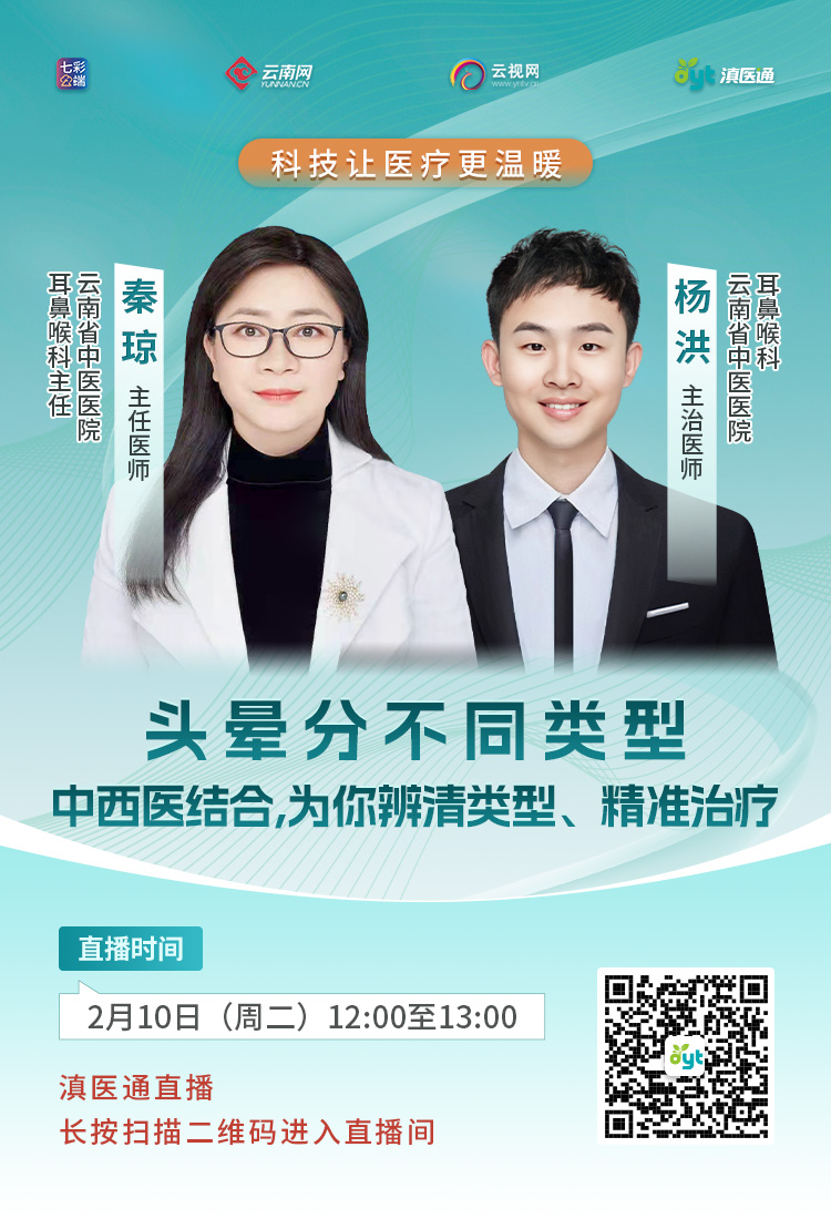 经常头晕,却总找不到原因?头晕到底分多少种类型?怎样才能中西医结合,辨清根源、精准调理?2月10日(周二)12:00至13:00,云南省中医院专家做客滇医通直播间为您解答,欢迎扫码观看。