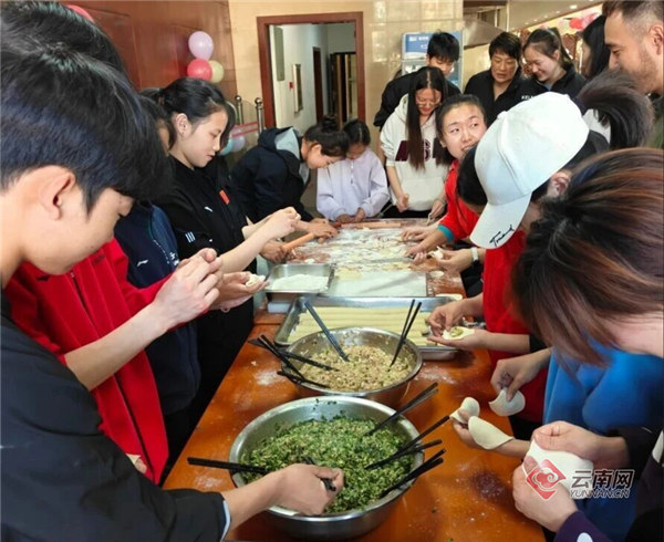 新春插花与写春联活动同步开展,将传统文化韵味与新春的美好寓意完美融合。另一边,写春联区域墨香氤氲,笔墨纸砚、春联纸、福字纸整齐陈列,大家自由组队、即兴创作,或挥毫泼墨书写春联,或凝神静气勾勒吉祥福字。最后,活动迎来最具“家味”的同心包饺子环节,现场大家按“科室+运动队”混合分组,分工协作、互帮互助,和面、擀皮、包馅,动作娴熟又默契十足。欢声笑语中,大家褪去训练的疲惫、工作的忙碌,唠家常、谈理想、话未来,现场处处洋溢着“家”的温馨与团圆的喜悦。