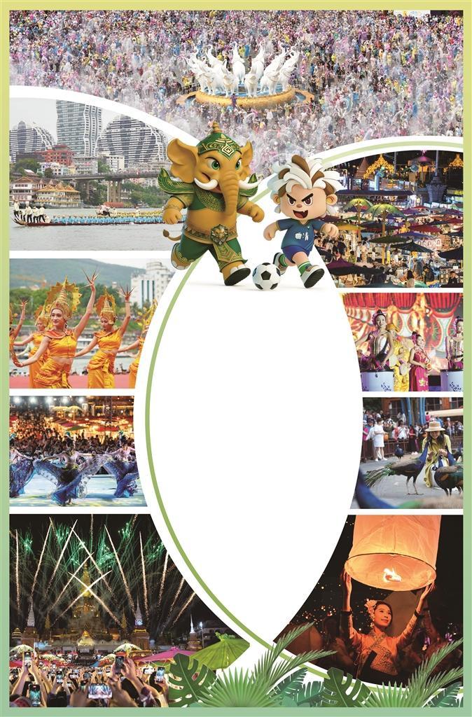 西双版纳风光(拼版图片)。新华社发 卡通人物形象由AI生成。陈靖云 制