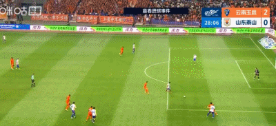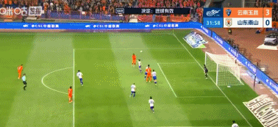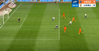 仅仅4分钟后,玉昆再度开花,第32分钟,玉昆前场定位球开出后转移至中前场右侧,叶楚贵停球分边,约尼查下底传中,奥斯卡头球攻门得手,完成梅开二度,玉昆继续扩大比分。上半场补时阶段,泰山队刘洋破门,但因越位在先,进球被判无效。