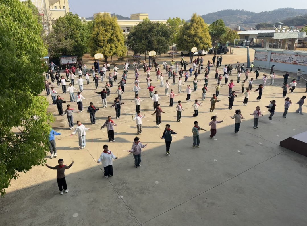 学生们在大课间跳绳。受访教师陆富川 供图