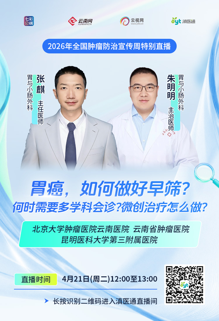 4月21日(周二)12:00至13:00,专家做客滇医通直播间为您解答,欢迎扫码观看。