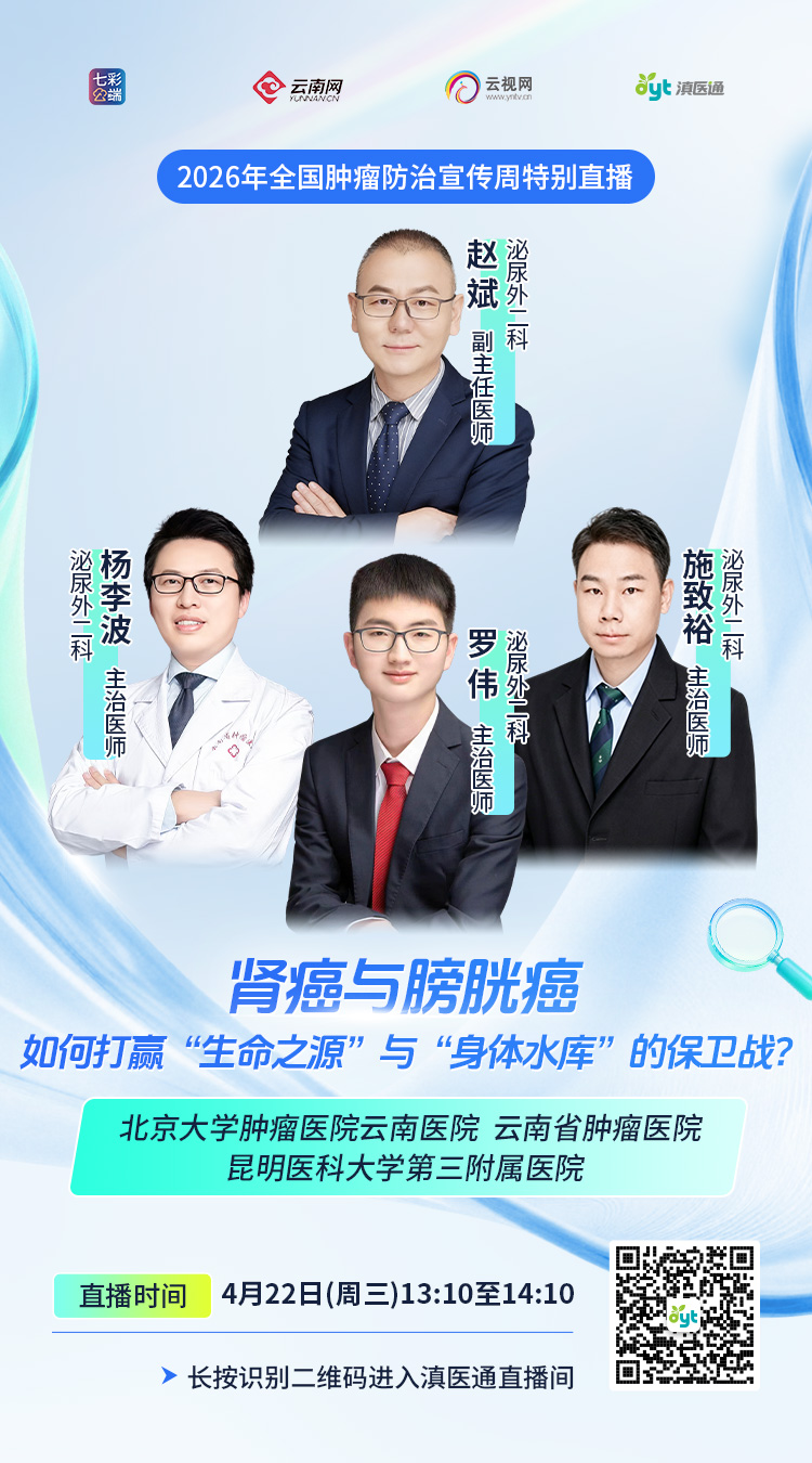 4月22日(周三)13:10至14:10,专家做客滇医通直播间为您解答,欢迎扫码观看。