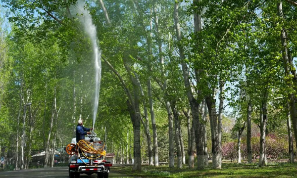 北京市园林绿化科学研究院系统改良的杨柳飞絮凝絮剂,为无毒无害的环境友好型高分子有机物,适配高压雾炮车,无人机等多种喷施设备。药剂喷施后,可在树冠表面形成一层“生态膜”,使即将炸裂的果絮黏结收缩,失去飞行能力,单次喷施即可使单株杨柳雌株飞絮飘散量减少三分之二以上,就像是给飞絮穿上了一个黏性的“防护套”。